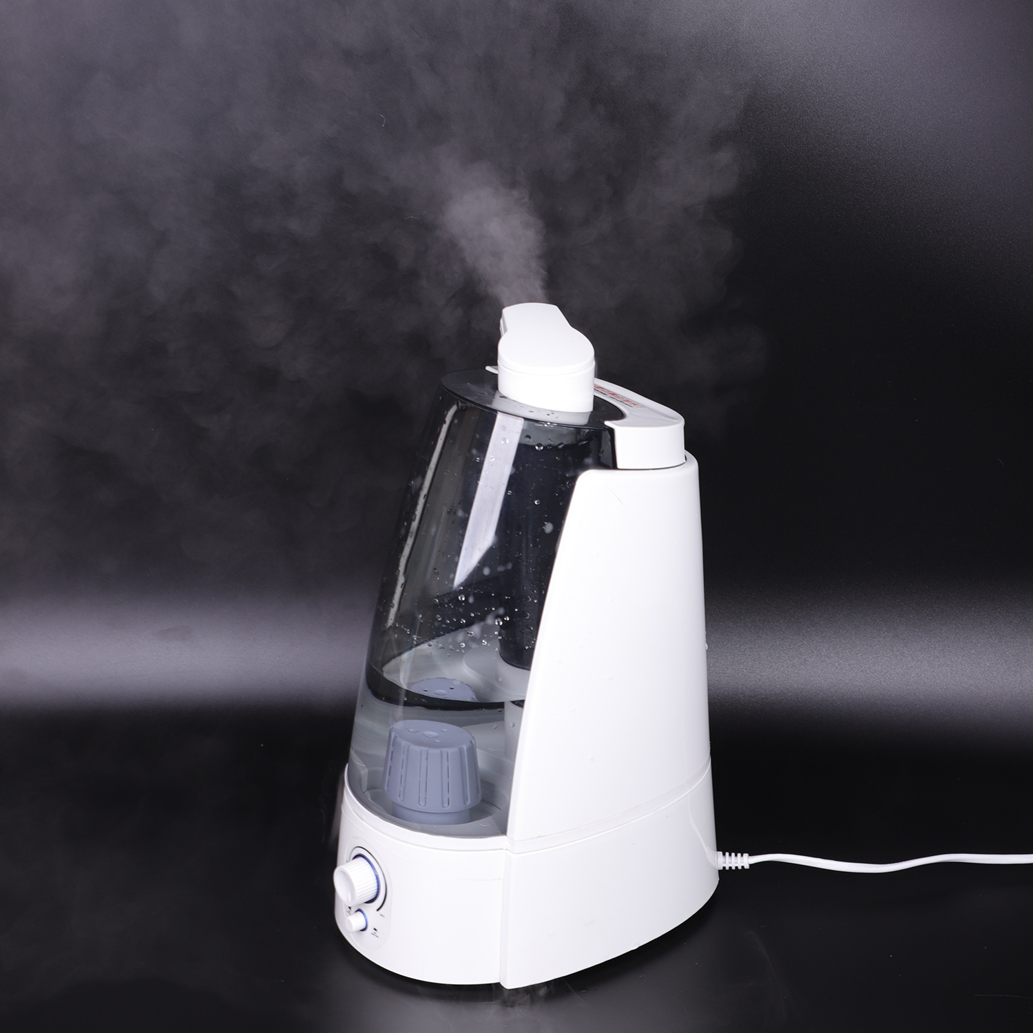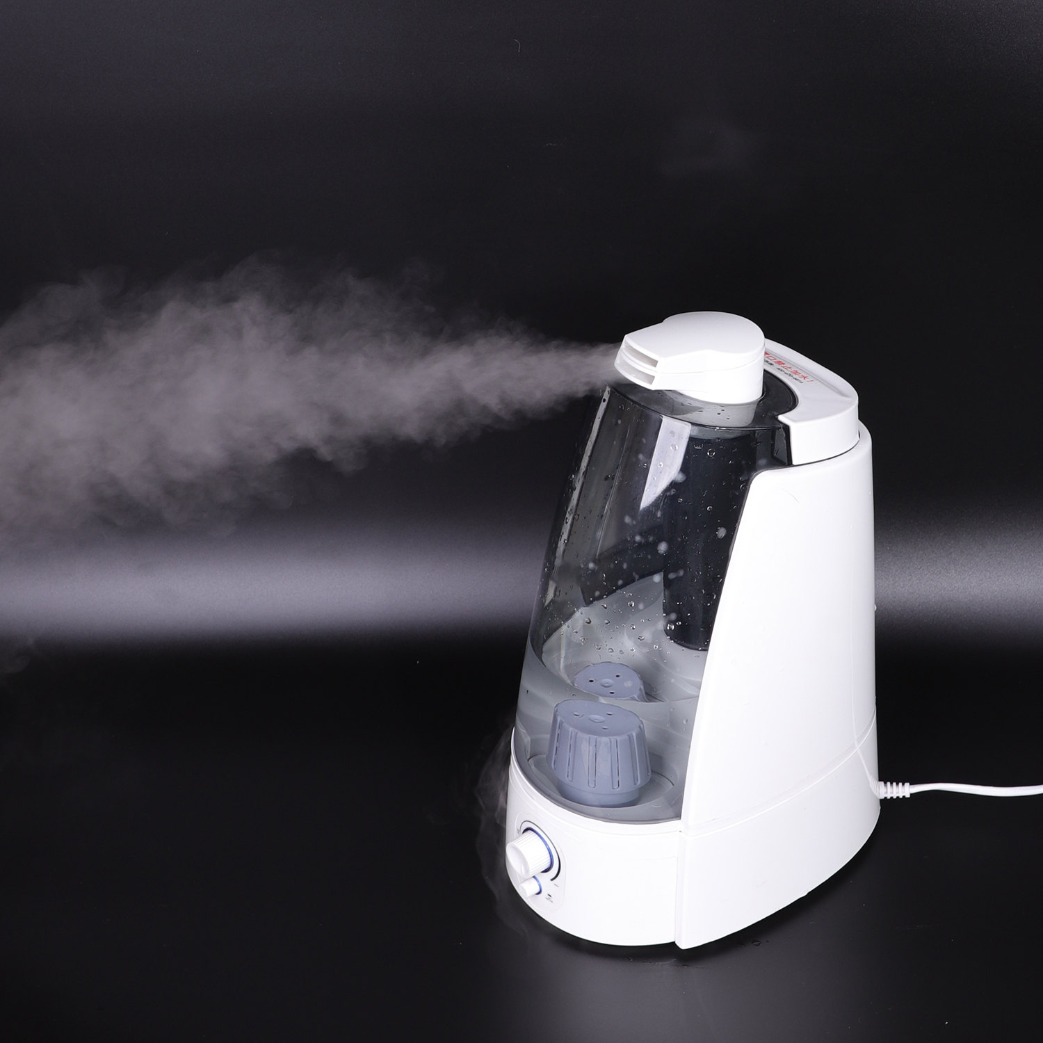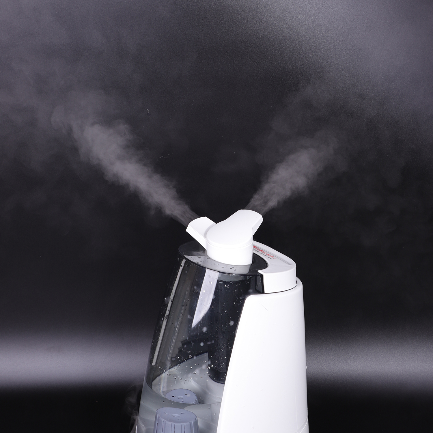 Гэты ўвільгатняльнік паветра з цёплым і халодным туманам можа рэгуляваць магутнасць туману, падвойнае сопла на 360 градусаў, вялікую ёмістасць, аўтаматычнае адключэнне, калі рэзервуар для вады пусты, смаляны фільтр па жаданні, версія з халодным і цёплым туманам па жаданні.